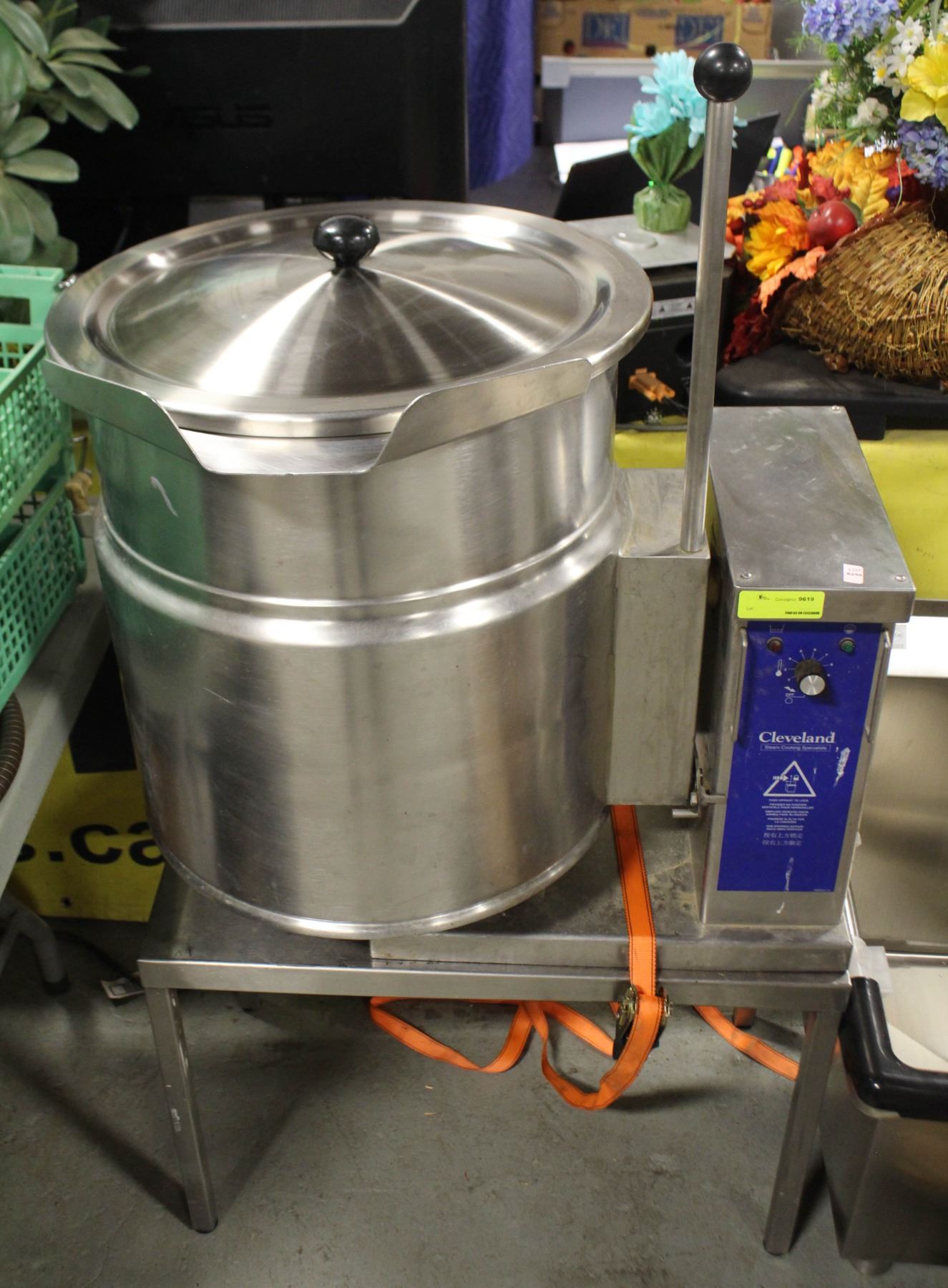 CLEVELAND TILTING STEAM KETTLE ON STAND W/ LID