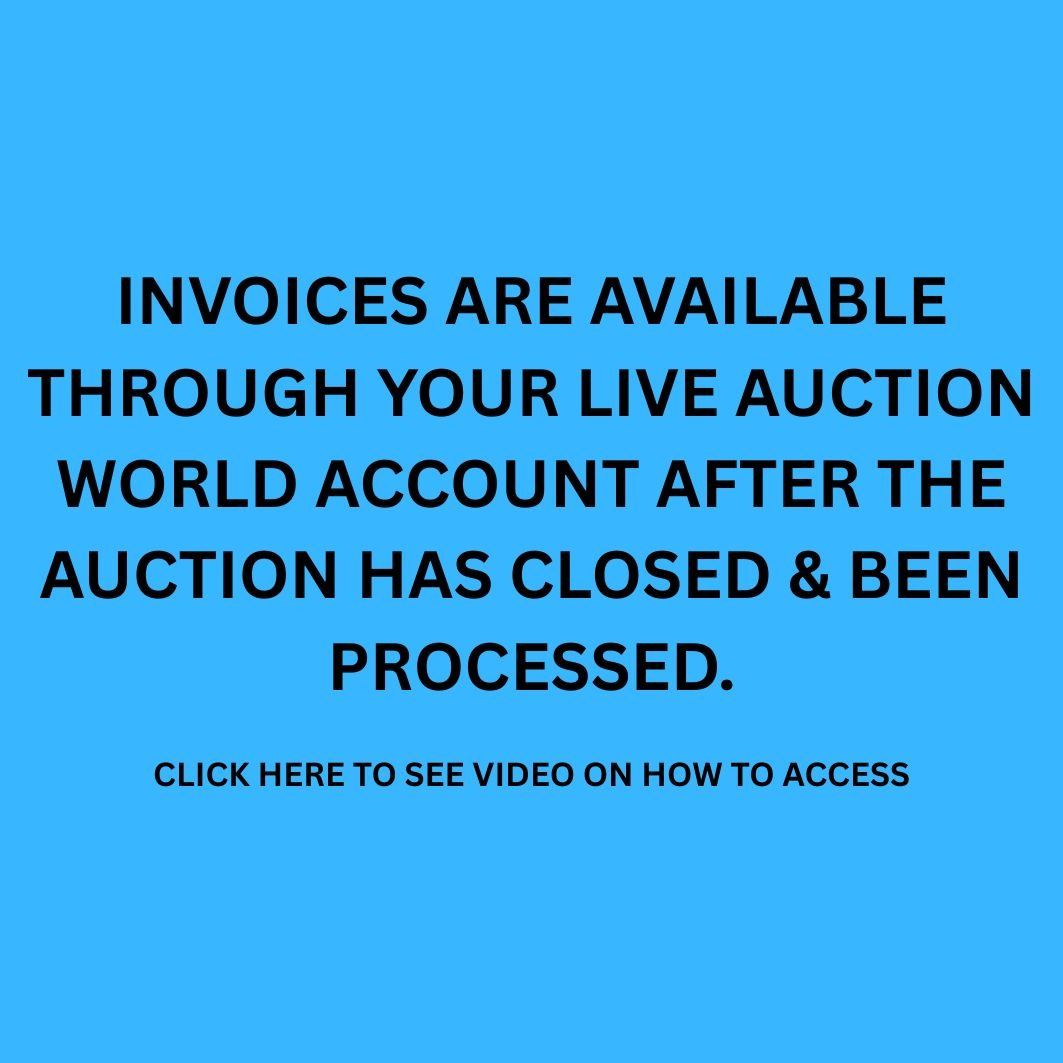 Invoices are available after the auction closes through your Live Auction World Account. If paying by e-transfer, send to: bob@doddsauction.com (auto-deposited)