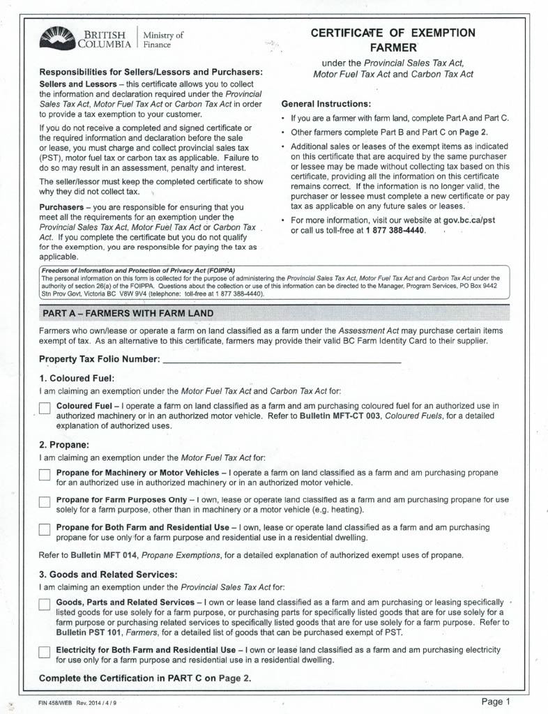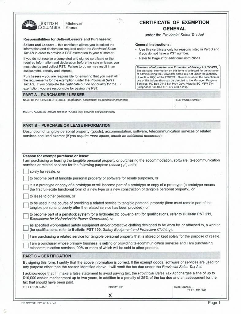 Click on link below for PST Exemption form: