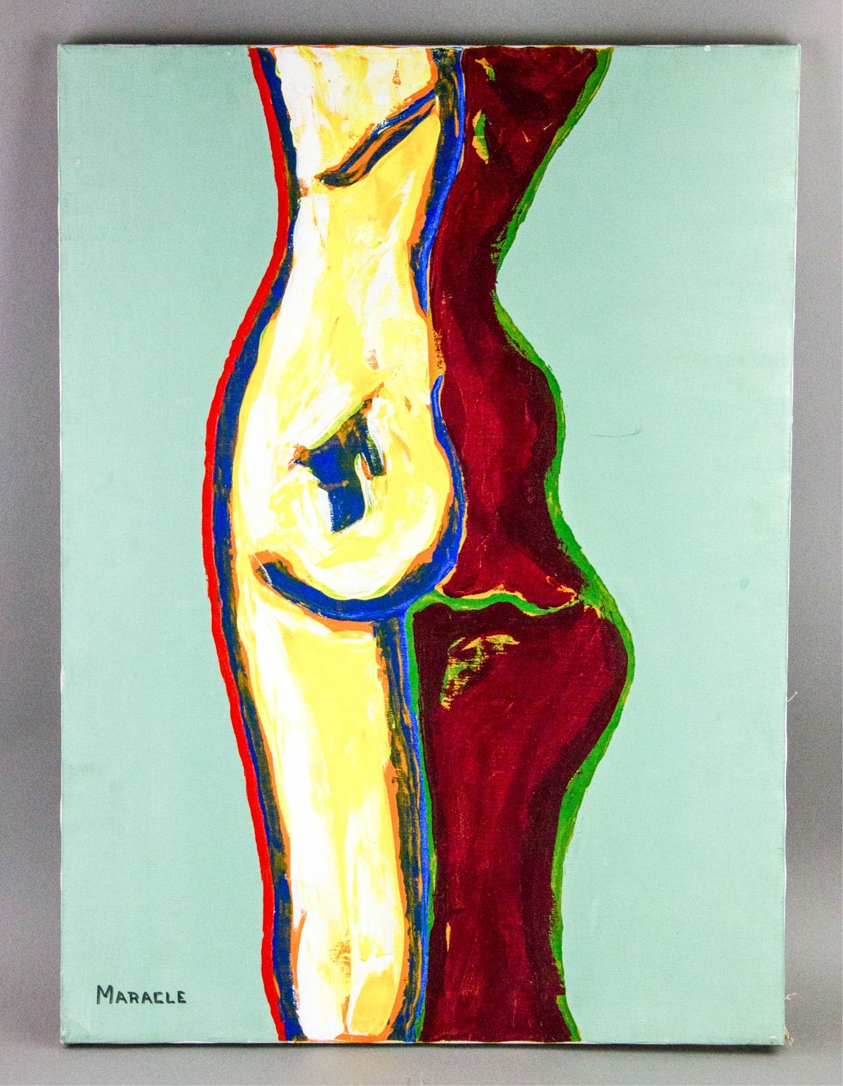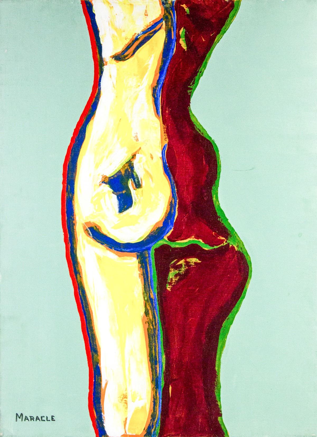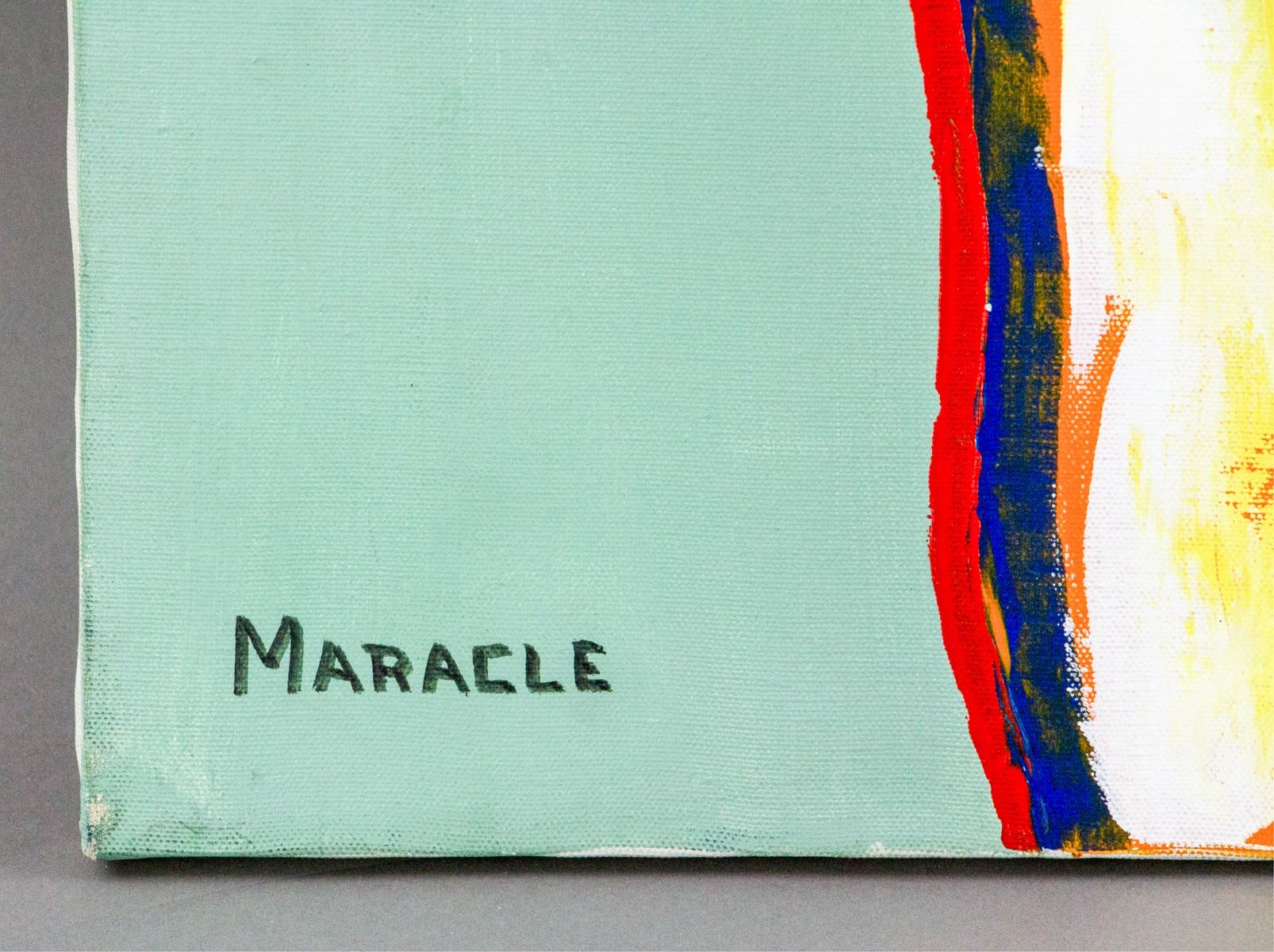 Acrylic on canvas. Signed Maracle on bottom left; 77 cm x 56 cm, Clifford Maracle (1944-1996) was from the Mohawk Nation and best known for his depictions of the plight of urban Indians in the 1970s . PROVENANCE: Private collection (Toronto, ON)