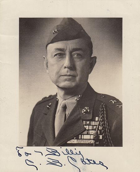(1893 - 1970) 19th Commandant of the Marine Corps, led the 1st Marine Reg. at Guadalcanal, then took command of the 4th Marine Div. in the Marianas operation, the Tinian campaign and the seizure of Iwo Jima. I.S.P. 4" x 5" b/w, a chest, up pose signed in the white bottom margin. Slightly brushed, else very good.
