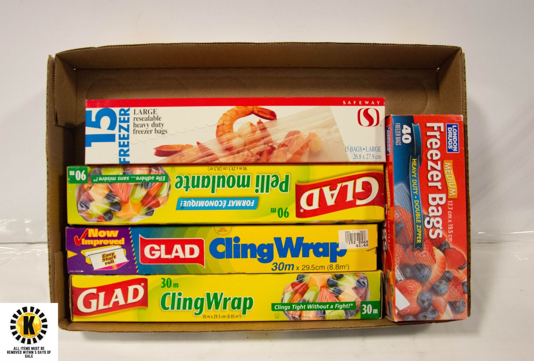 CLING WRAP/SANDWICH BAGS- 5 PIECE LOT ASST.
