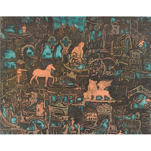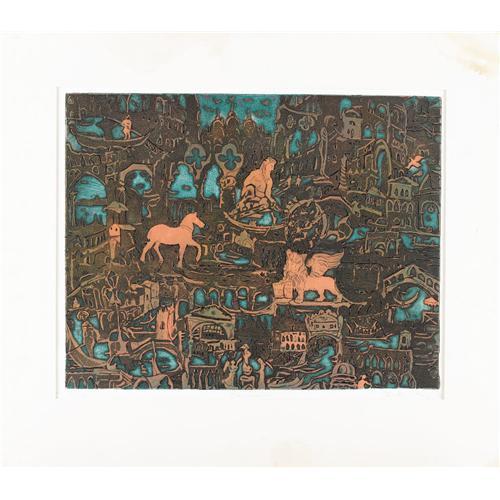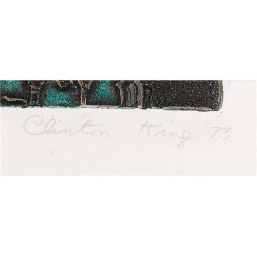 <B>CLINTON KING (1901-1979)</B></I><BR><I>Barcarolle,</B></I> 1973<BR>Color intaglio<BR>15in. x 9in.<BR>Signed and dated lower right<BR>Titled lower center<BR><BR>Besides being a painter, Clinton King was a talented pianist. The title of this color etching and aquatint is <I>Barcarolle,</B></I> which is a musical term. Barcarolle is a lilting, swaying rhythm reminiscent of a gondolier's stroke, almost invariably a moderate tempo 6/8 meter.<BR><BR>This print also demonstrates Clinton King's technical mastery of the printing process.<BR><BR>Provenance:<BR>Acquired from the artist by the present owner<BR><BR><BR><BR><b>Shipping:</b> Requires 3rd Party Shipping (<a target="_blank" href="http://www.heritageauctions.com/common/shipping.php">view shipping information</a>)