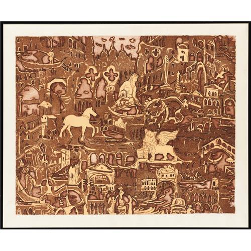 <B>CLINTON KING (1901-1979)</B></I><BR><I>Bascarolle</B></I><BR>Color intaglio<BR>15 1/2in. x 19in.<BR>Unsigned<BR><BR>Another version of this print using different color inks was sold in our last Early Texas Art auction, lot #36043.<BR><BR>Provenance:<BR>Acquired from the artist by the present owner<BR><BR> <B>Condition Report:</B> Excellent condition. Frame in good condition - no glass.<BR><BR><b>Shipping:</b> Requires 3rd Party Shipping (<a target="_blank" href="http://www.heritageauctions.com/common/shipping.php">view shipping information</a>)