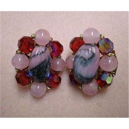BEAUTIFUL EARRINGS,MADE BY CORO FROM GORGEOUS ART GLASS BEADS as per images, EXCELLENT CONDITION, EACH MEASURES ABOUT 1 1/2" X 1", US BUYER TO PAY 7.00 FOR SHIPPING PLUS INSURANCE.THANKS.
