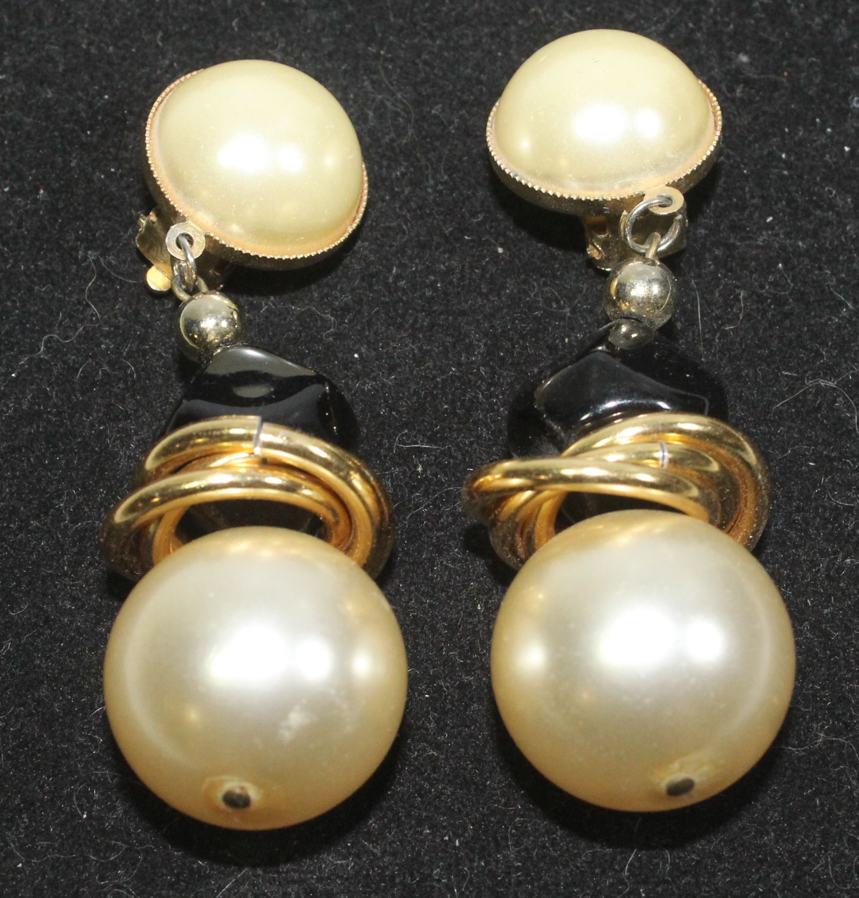 CLIP ON EARRINGS GOLD/BLACK/PEARL COLOR