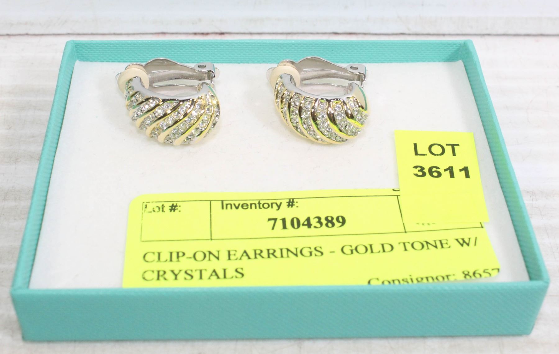 CLIP-ON EARRINGS - GOLD TONE W/ CRYSTALS