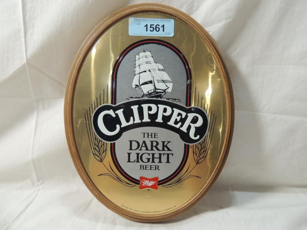 WALL SIGN CLIPPER THE DARK LIGHT BEER WALL SIGN. MILLER BEER SIGN. AS SHOWN. SEE PHOTO FOR MORE DETAILS.
