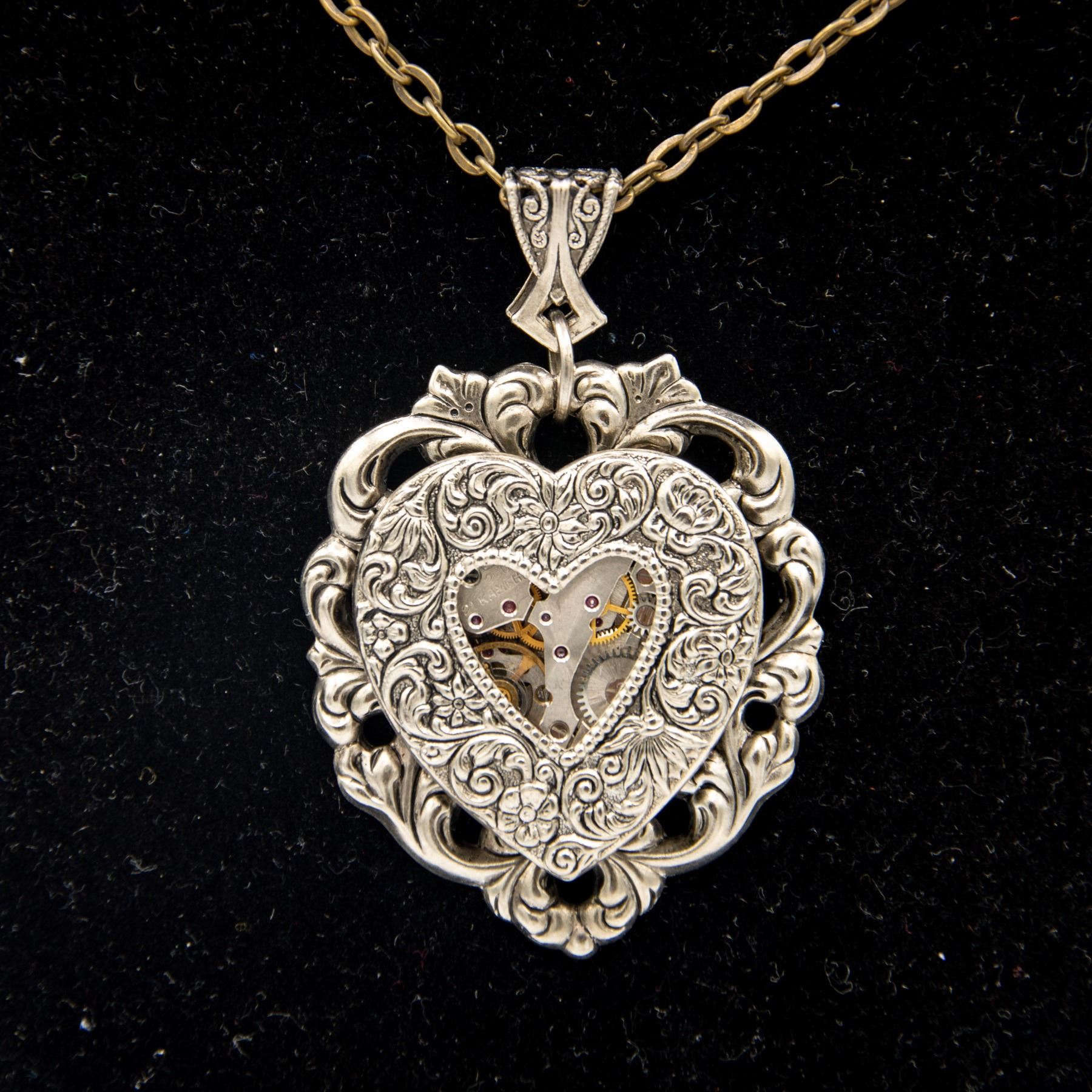 CLOCK WORK HEART NECKLACE 20" LONG CHAIN