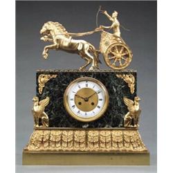 CLOCKS, BAROMETERS, SCIENTIFIC INSTRUMENTS - A fine large French ormolu and verde marble Empire...