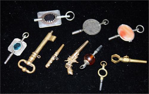 9 KLOCKNYCKLAR, SILVER/DOUBLÉ, 1800-TAL, BL. A I FORM AV REVOLVER MED EROTISK BILD I KOLVEN