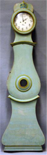 GOLVUR, SVÄNGT FODRAL AV JUNGFRU MODELL, GRÖNMÅLAT, RÄFFLAT KRÖN MED SPINÉ, ROKOKO, VERK UTBYTT, ORIGINALVERK MEDFÖLJER, H206, B59