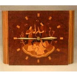 VÄGGUR, RIK INTARSIA AV OLIKA TRÄSLAG, DEKOR AV SPINNANDE KVINNOR, MJÖLBY INTARSIA, ART DECO, H32, B43