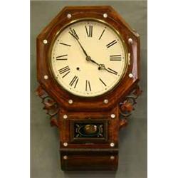 VÄGGUR, SK "DROPPSUR" MAHOGNY, OKTAGONAL URTAVLA, GENOMBRUTEN SIDODEKOR AV LÖV OCH PÄRLEMOR, 1800-TALETS SENARE DEL, H71, B42