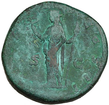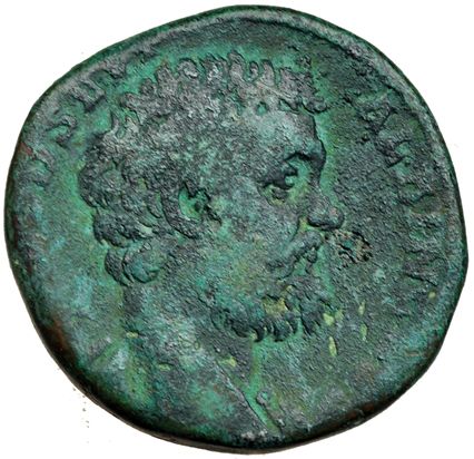 CLODIO ALBINO. Sestercio. Roma (194). R/ La Felicidad a izq. RIC-52. CH-16. Pátina verde. BC-.