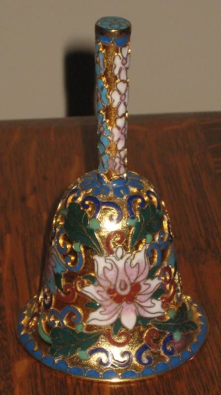 CLOISONNE GILT BELL - 5.25"H X 3"W X 3"D - EXCELLENT CONDITION - WONDERFUL DETAIL
