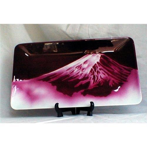 This is an interesting rendition of Fujiyama, Mt. Fuji on a decorative enamel tray or plaque. The color sets of the majesty of the mountain.