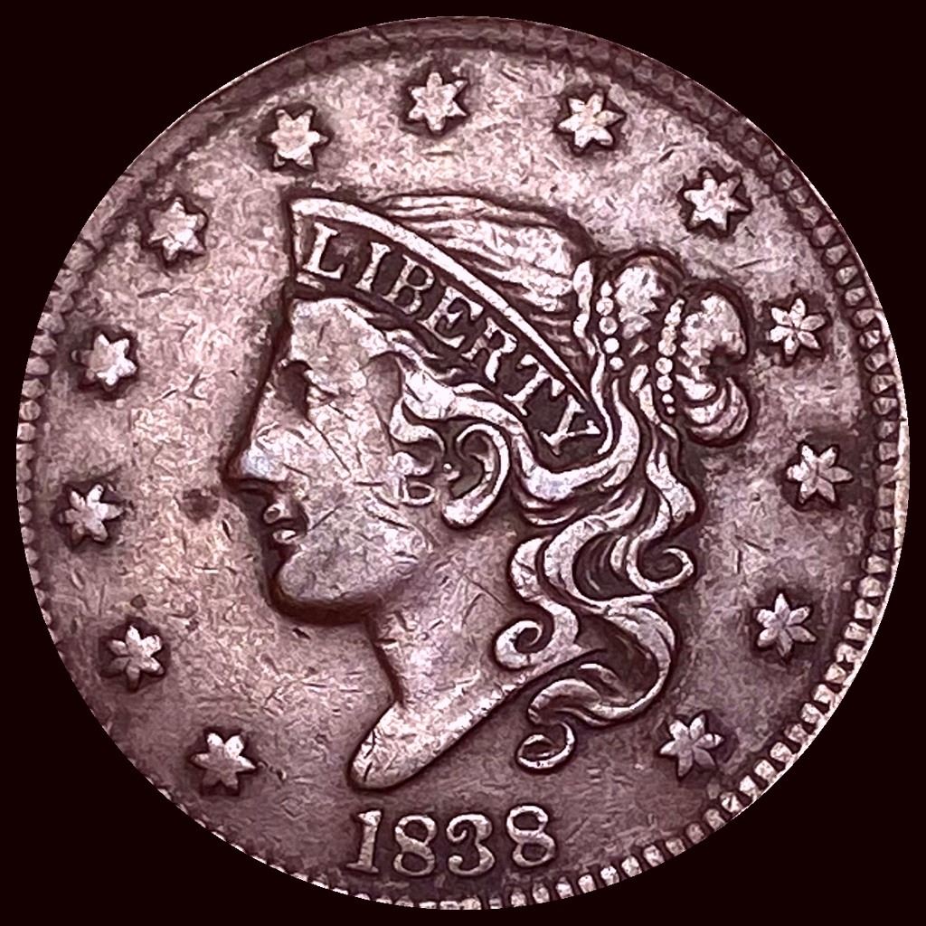 CLOSELY UNCIRCULATED 1838 Coronet Head Large Cent