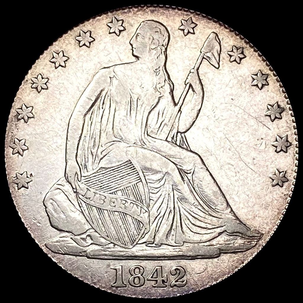 CLOSELY UNCIRCULATED 1842-O Silver Half Dollar (Seated Liberty)