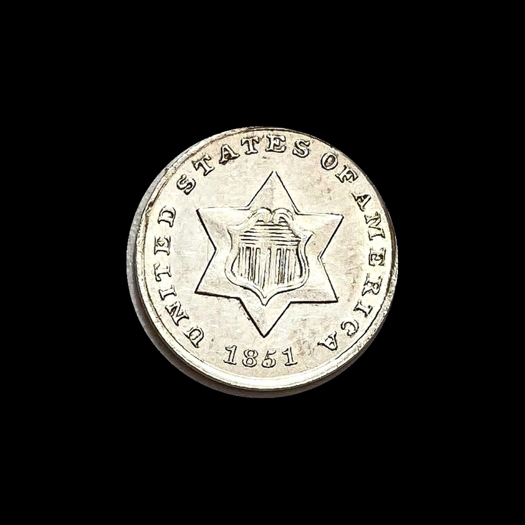 CLOSELY UNCIRCULATED 1851 Silver Three-Cent Piece