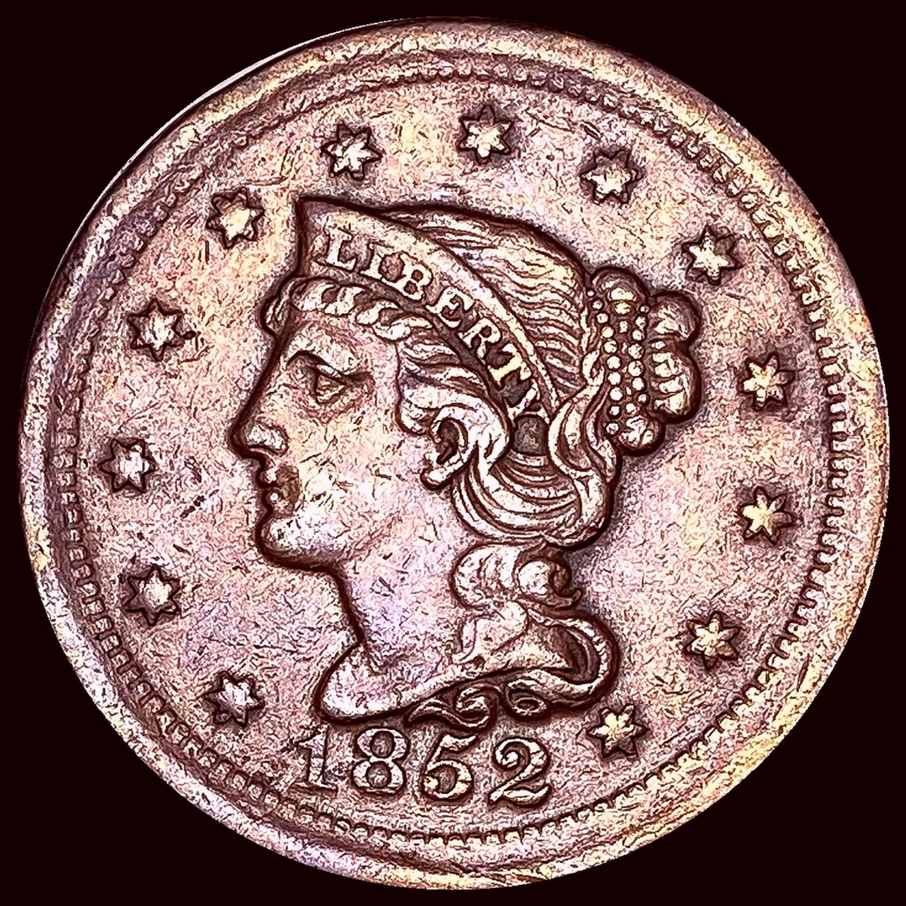 CLOSELY UNCIRCULATED 1852 Braided Hair Large Cent