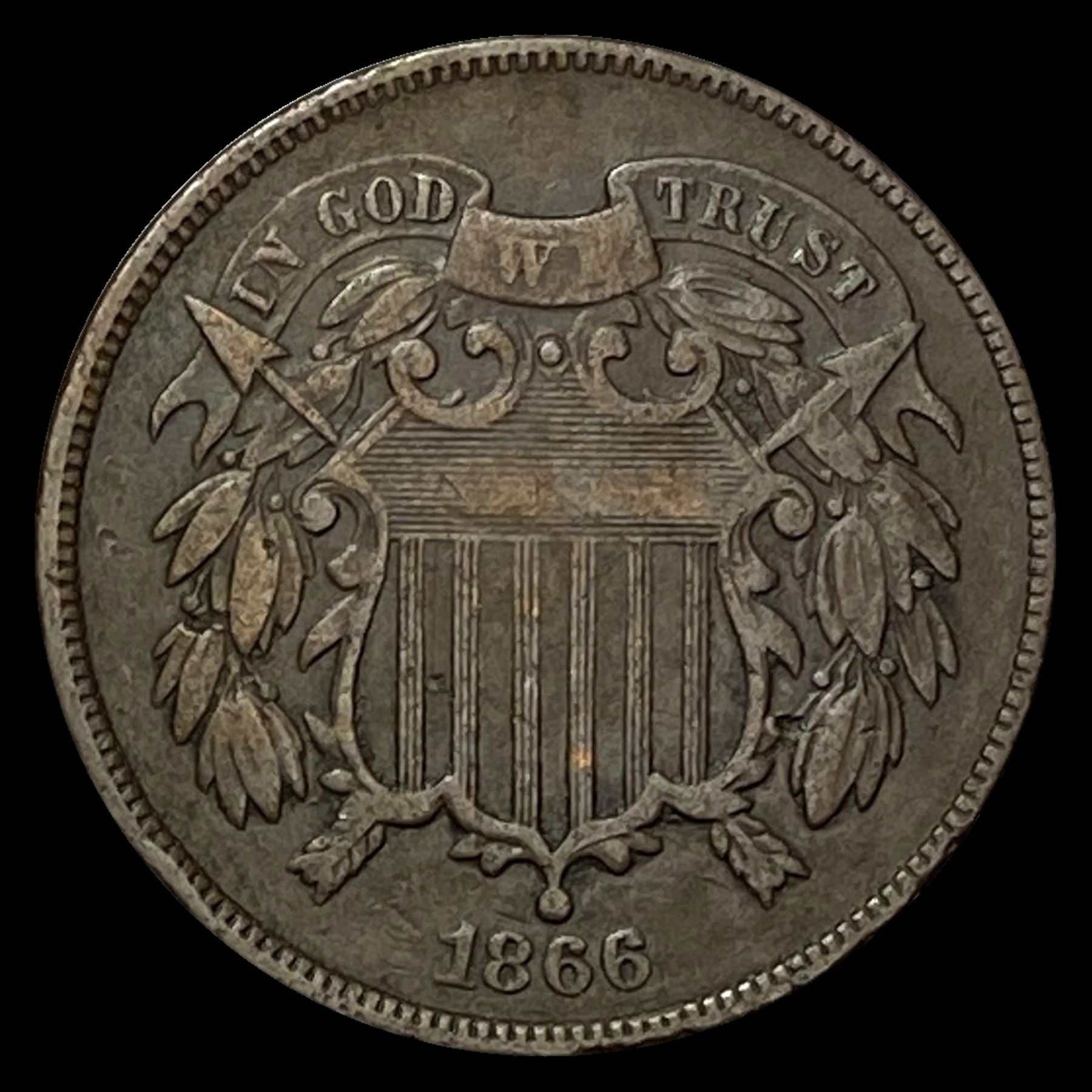 CLOSELY UNCIRCULATED 1866 Two-Cent Piece