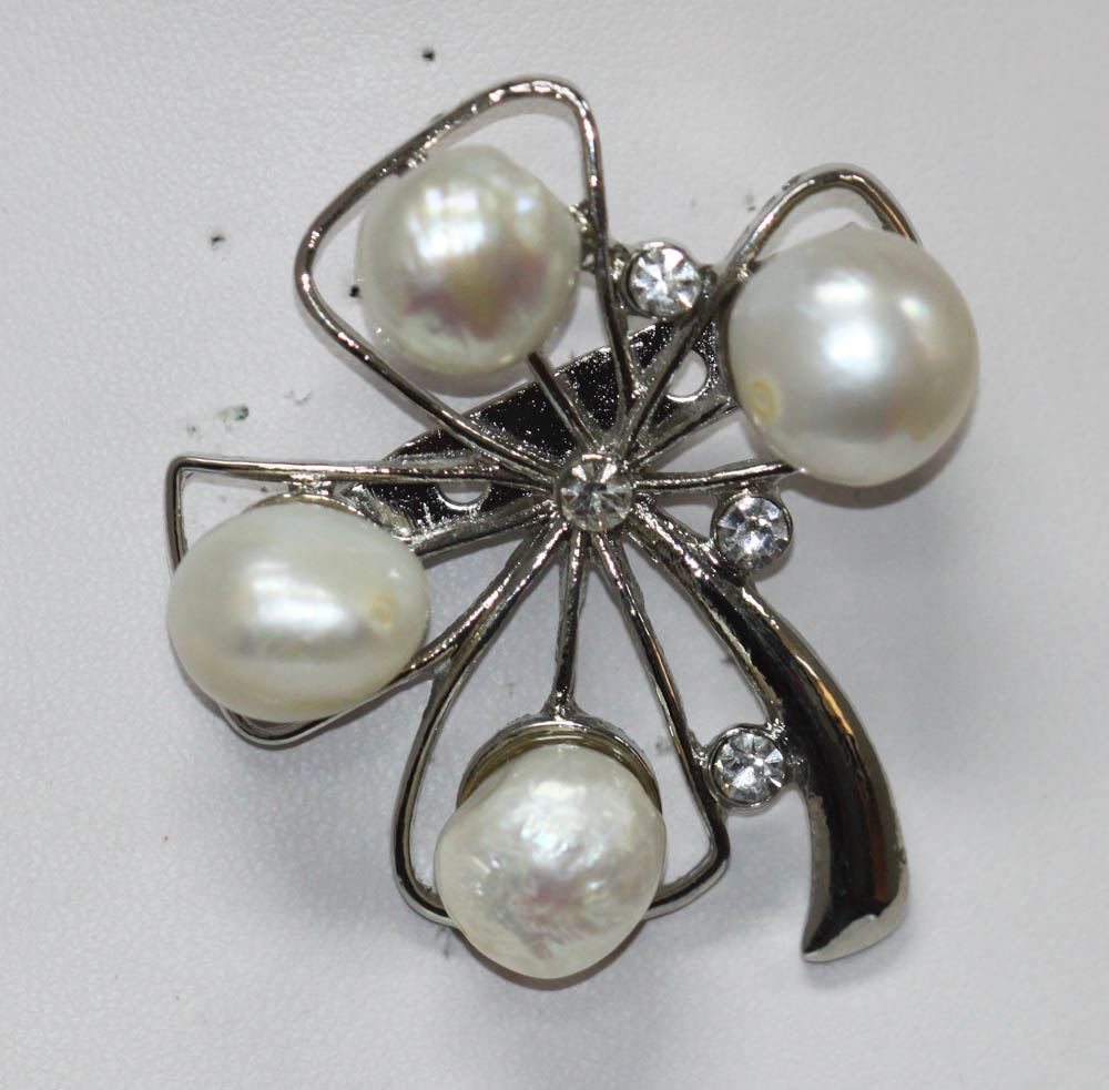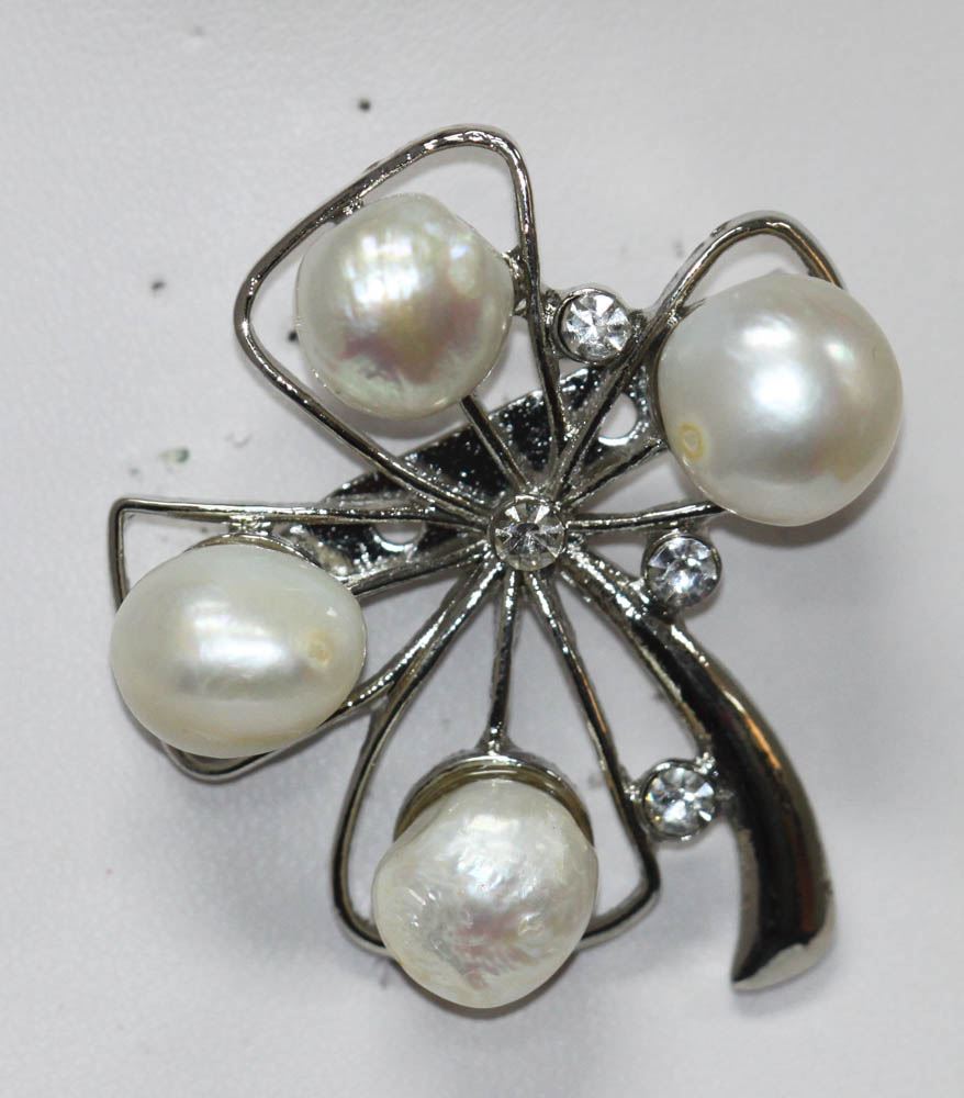 CLOVER SHAPE WHITE PEARL AND CZ BROOCH **|**|** CLOVER SHAPE WHITE PEARL AND CZ BROOCH