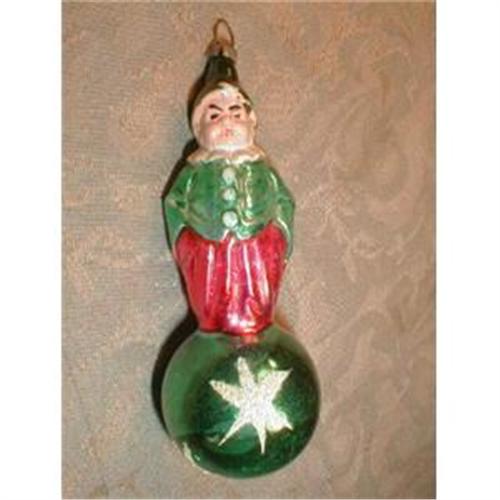 Great vintage figural silver glass ornament, Clown-on-Ball. Hand