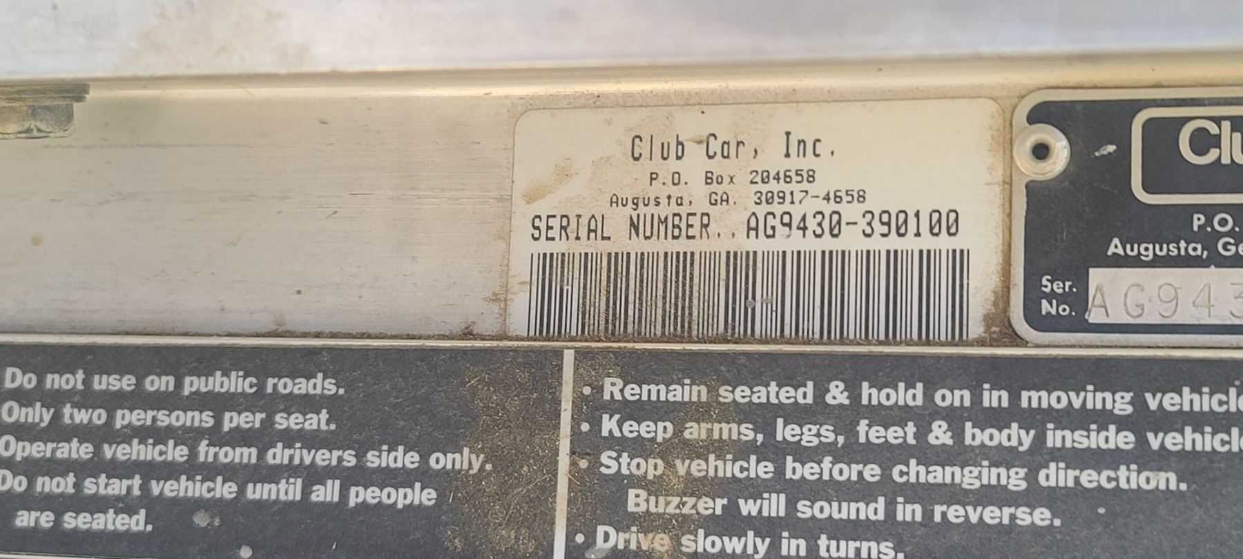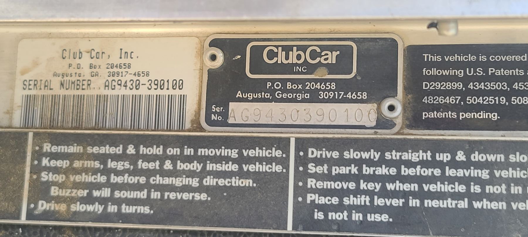 CLUB CAR GOLF CART - GAS POWERED IN GOOD RUNNING CONDITION. S/N AG9430390100