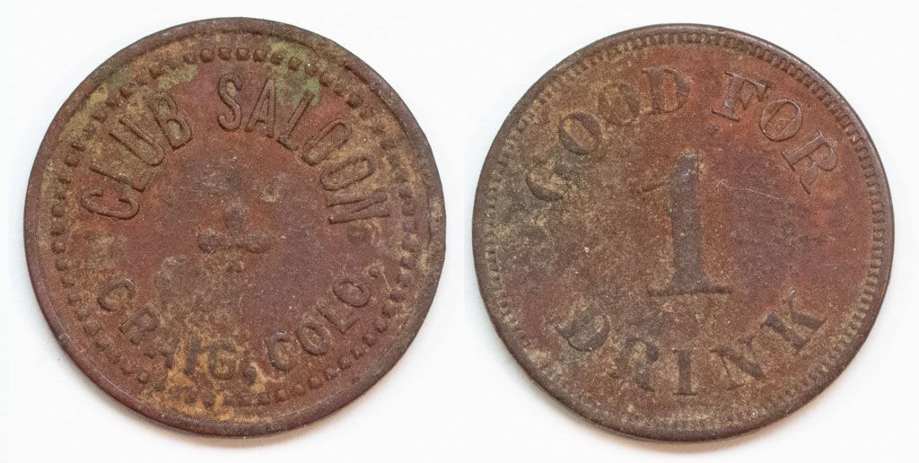 Obv. CLUB SALOON/ CRAIG, COLO. Rev. GOOD FOR/ 1/ DRINK Br 24 mm