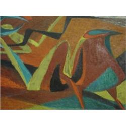 Clymer, Margaret framed oil on board contemporary painting. 34.25" x 25.25" framed.