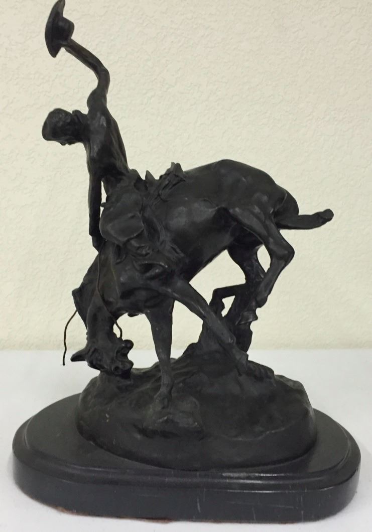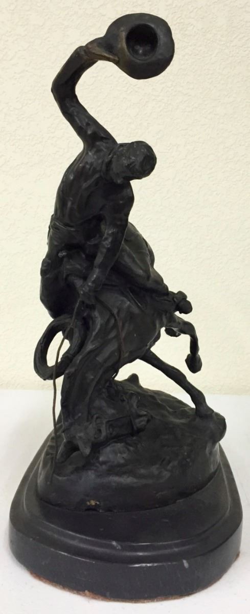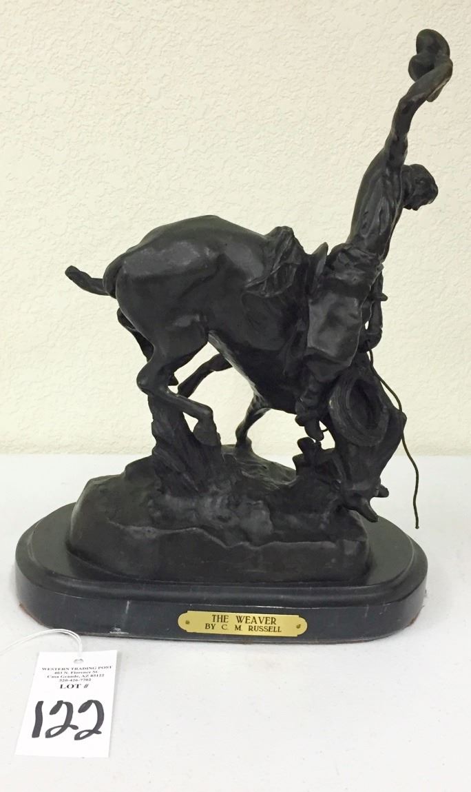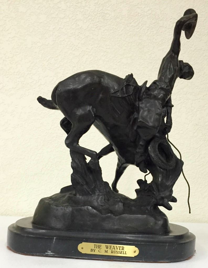 This CM Russell bronze, titled “The Weaver,” measures approx. 16” high by 12” long. Please note this is an “after Russell” casting. Please look closely at the pics as they are an important part of our description. Shipping: There will be a $10 handling / packaging fee for shipping this lot. The actual cost of postage will be added on top of that.