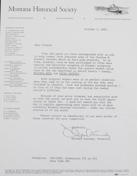 Original first casting C. M. Russell Buffalo Bronze Marked Roman Bronze Works Inc, NY #16 Signed CMR with a Steer Head, Measures 6" x 2 1/2" x 4" Fully documented with certificate of authenticity from the museum & original receipt.