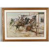 Double matted and framed, depicting a gunfight. 28" X 19" .