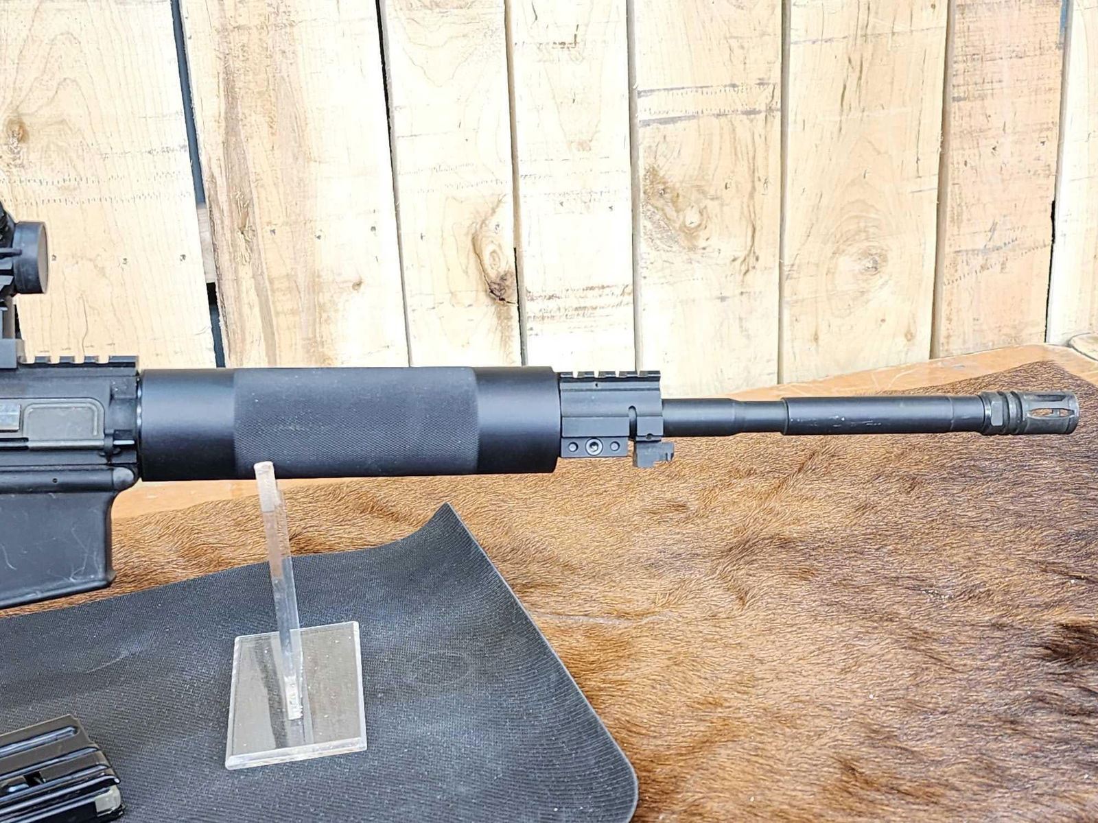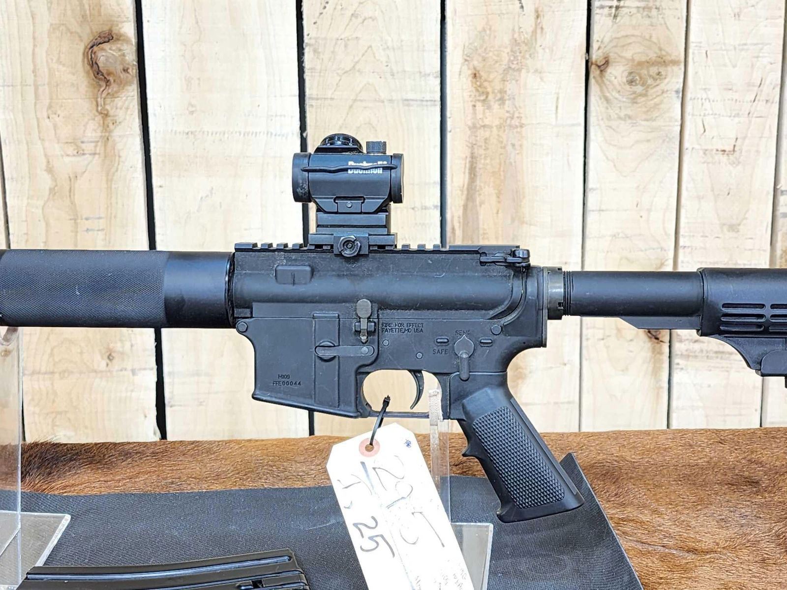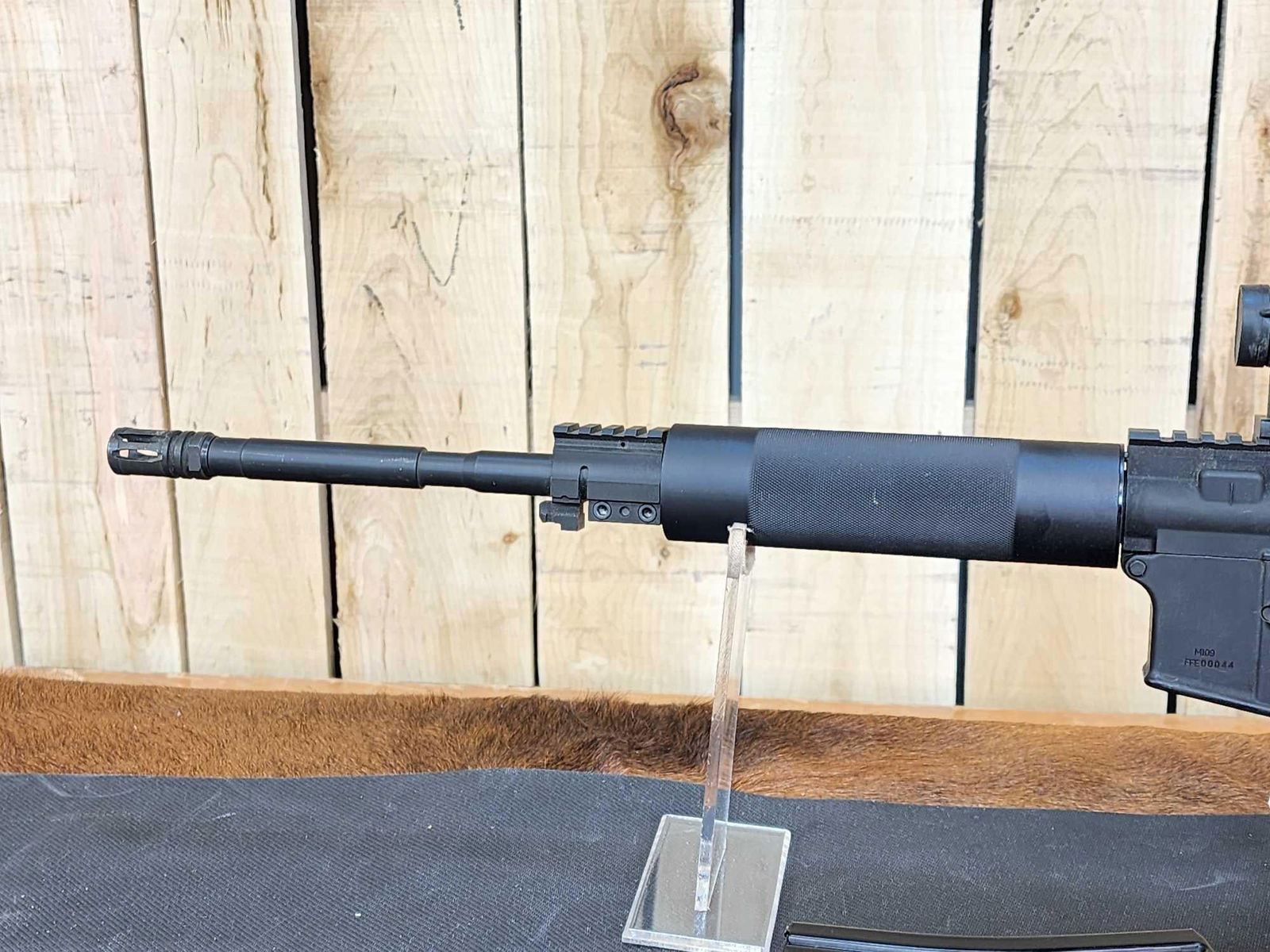 29.5 16" barrel with flash suppressor 1 in 7 twist free float hand guard M4 barrel profile red dot scope SN FFE0044