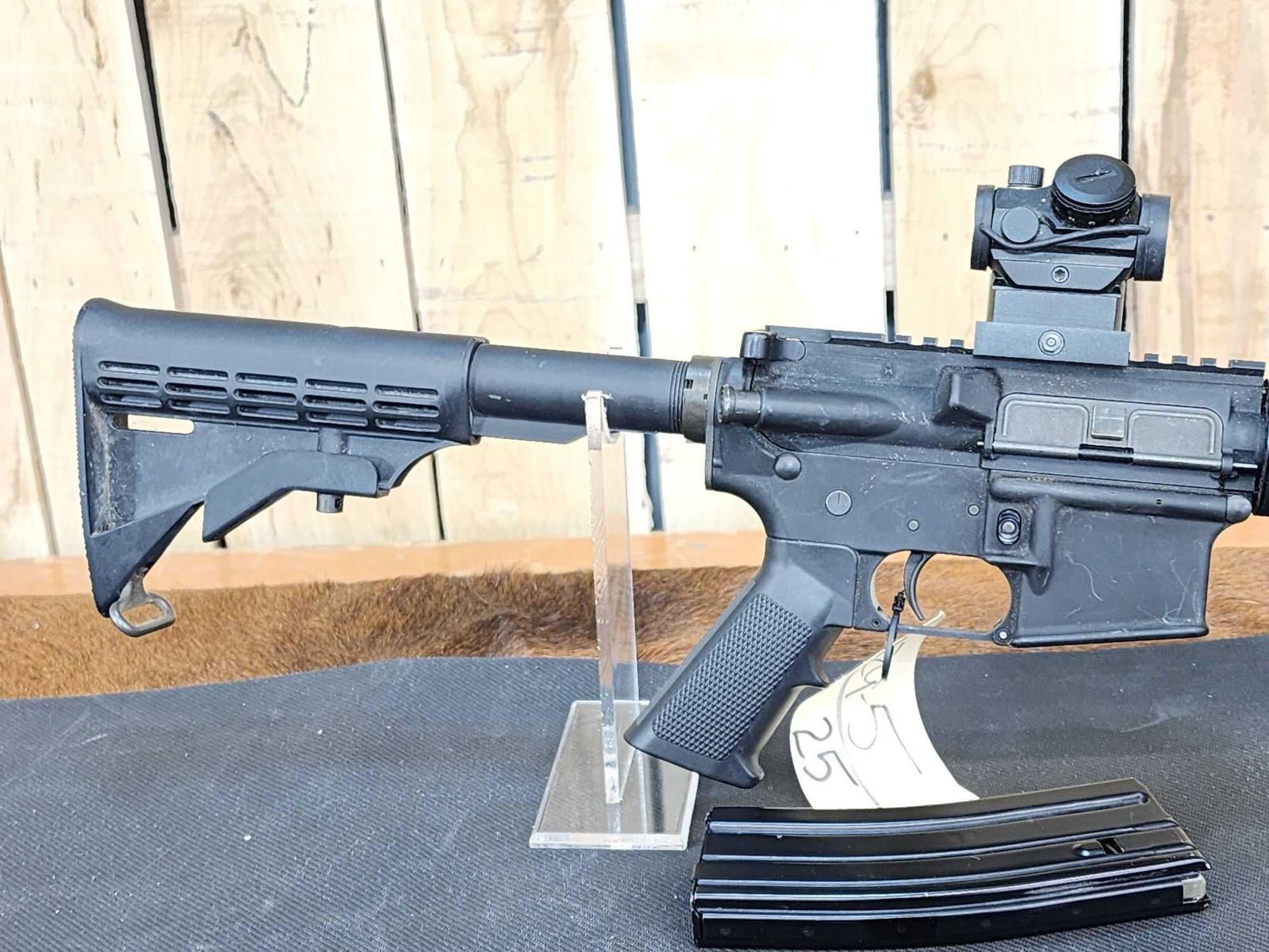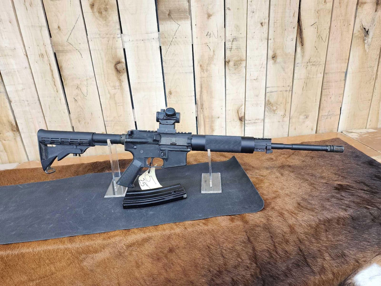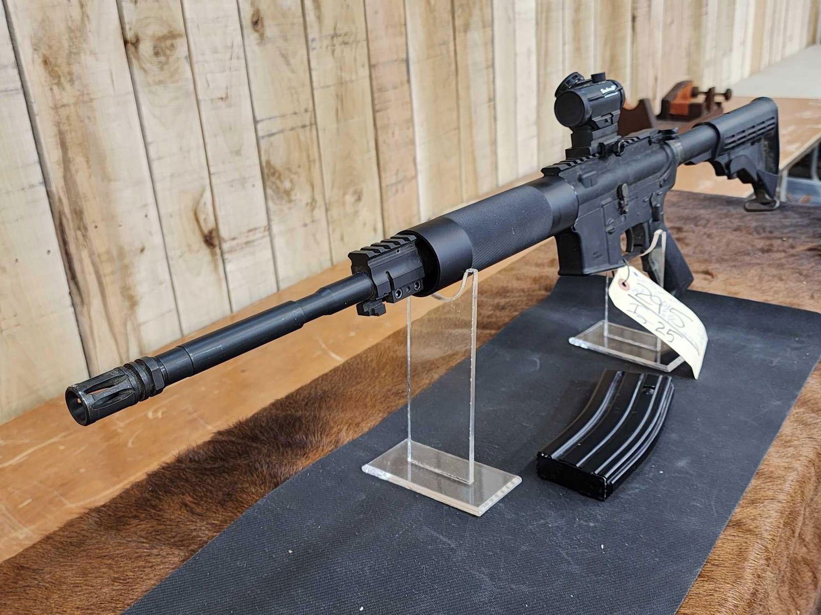 29.5 16" barrel with flash suppressor 1 in 7 twist free float hand guard M4 barrel profile red dot scope SN FFE0044