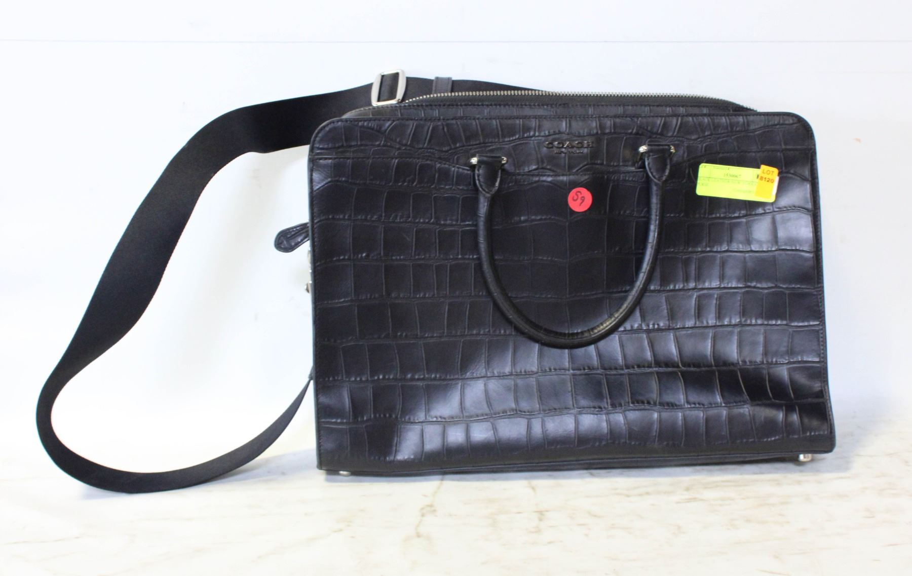 EMBOSSED CROCODILE LEATHER WITH HANDLES + SHOULDER STRAP