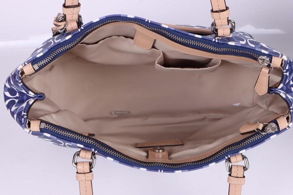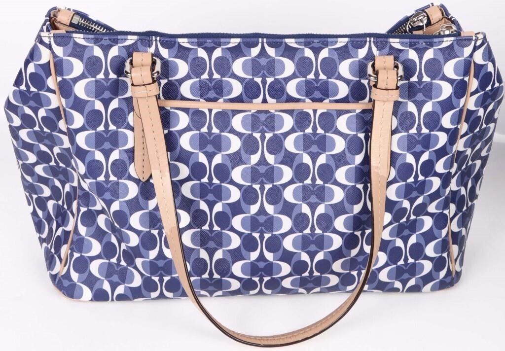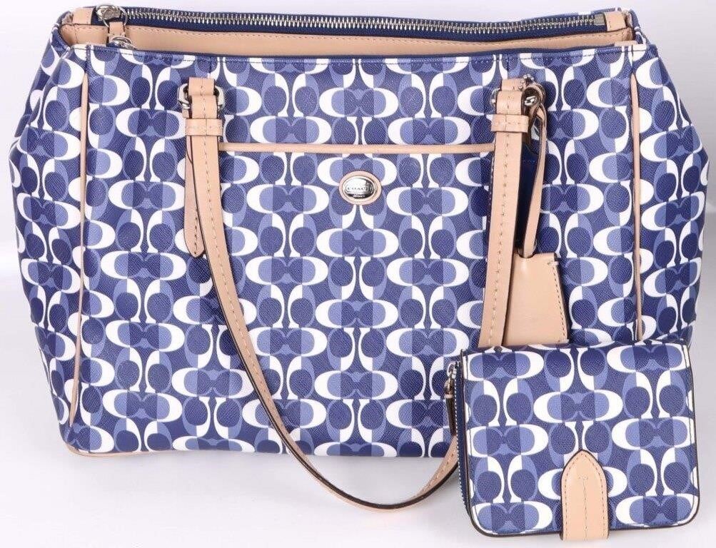 To feature classic double "C" design with Navy Blue and Cream colorway.