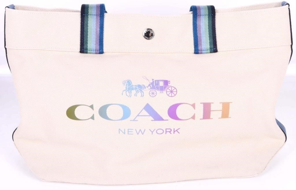 Coach rainbow canvas and leather cream tote bag, model number 91170.