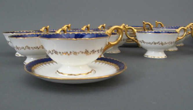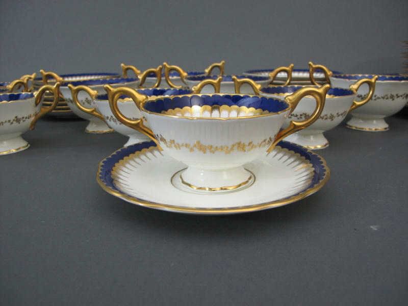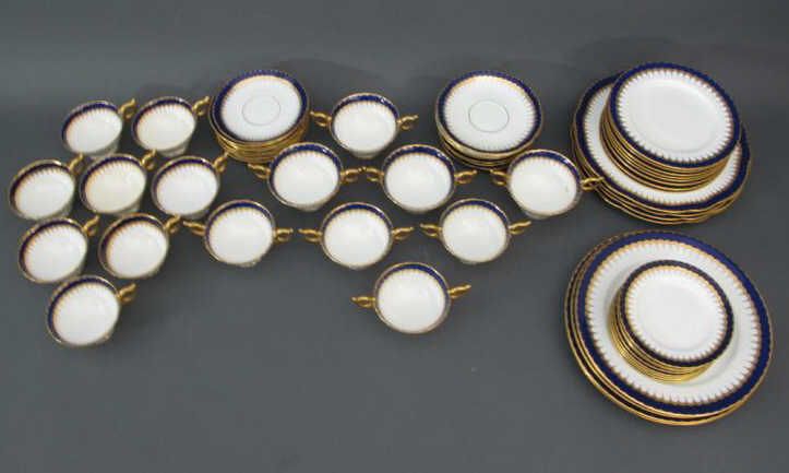 -complete for eight, comprised of: 8 dinner plates (10 1/2 in.), 8 luncheon plates (7 5/8 in.), 8 side plates (5 5/8 in.), 8 cups with saucers, and 8 cream soups with saucers.