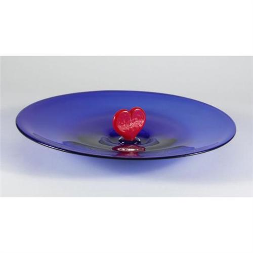 ART GLASS: An art glass platter, cobalt blue with an applied central red heart, signed ''Design Q. Plesl ((?)'', 16.5'' diameter.