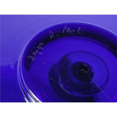 ART GLASS: An art glass platter, cobalt blue with an applied central red heart, signed ''Design Q. Plesl(?)'', 16.5'' diameter.