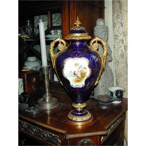 <tr><td><font size="2" face="Arial, Helvetica, sans-serif"><strong><font color="#000033">Title:</font></strong>COBALT COVERED URN COALPORT LIKE SEVRES</font></td></tr>