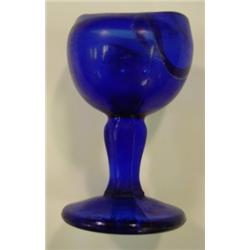 Cobalt eye cup. Marked under foot "Pat. Aug. 14 1917". 2.75" tall and 1.5" wide at top. Condition: Some damage but would make a great addition to a collection.