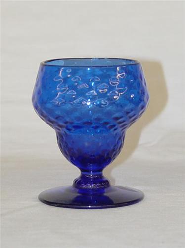 COBALT STIEGEL-TYPE PATTERN MOLDED PEDESTAL SALT- OPEN PONTIL (3" H X 2 3/8" D)