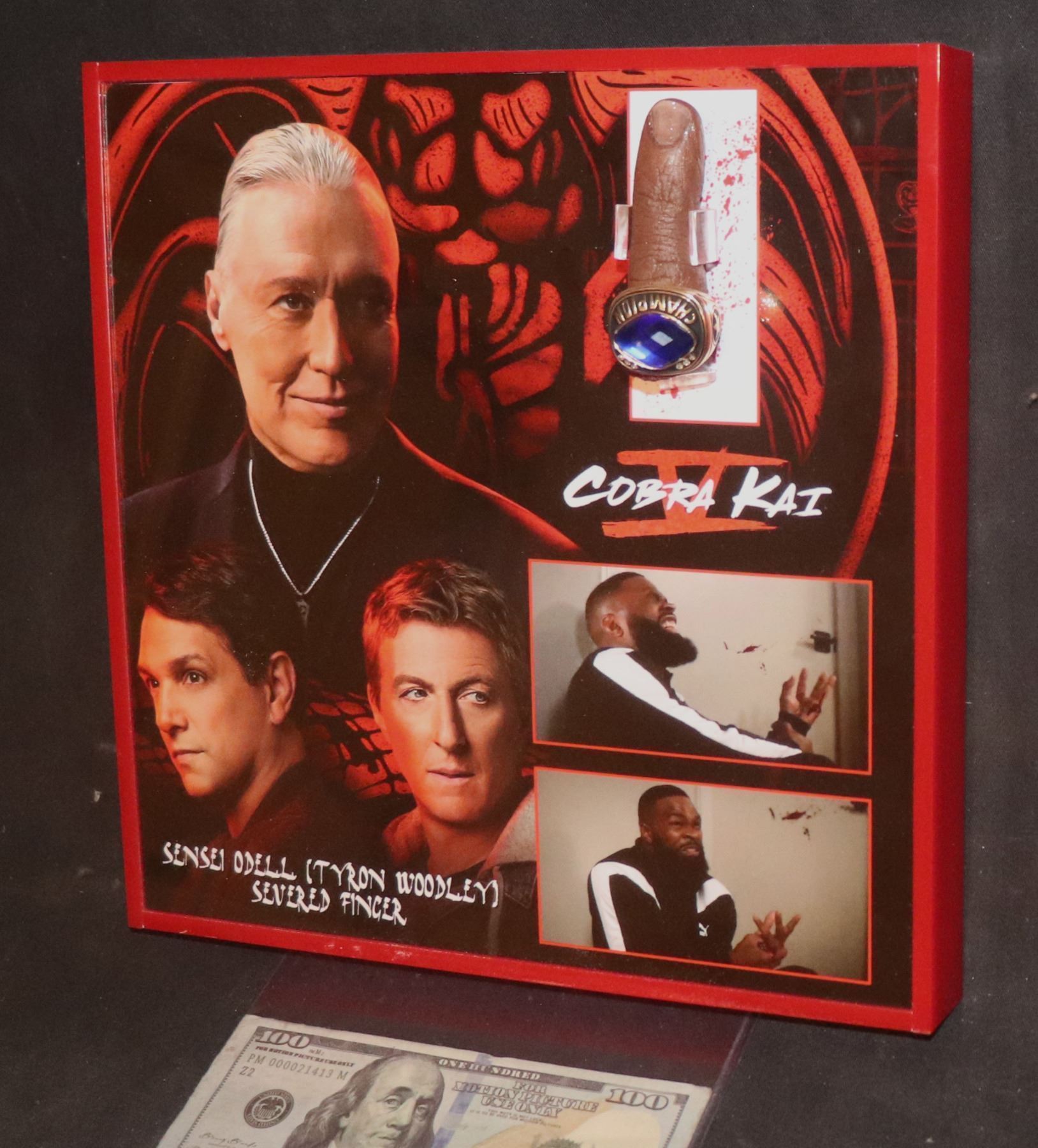 COBRA KAI SENSEI ODELL SEVERED SILICONE FINGER WITH CHAMPIONSHIP RING SCREEN MATCHED FRAMED!