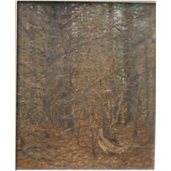 COBURN, Frederick Simpson, R.C.A., 1871-1960. "A Pheasant along the Forest Trail". Huile sur toile, signée. Oil on canvas, signed. 18" x 15" - 45.8cm x 38.1cm. $1400/1800