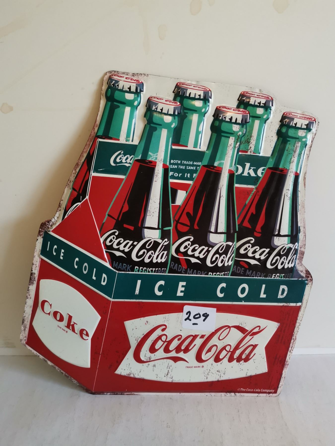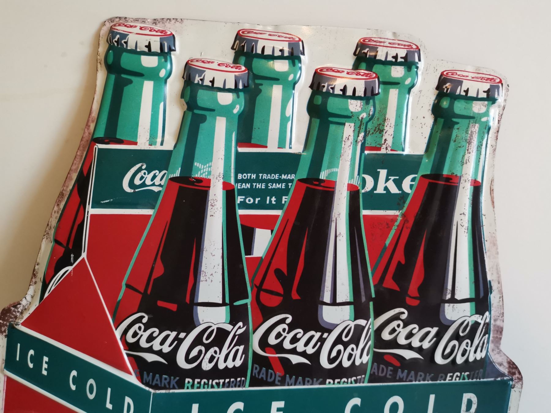 COCA-COLA 6 PACE METAL SIGN EMBOSSED 11.5" x 13