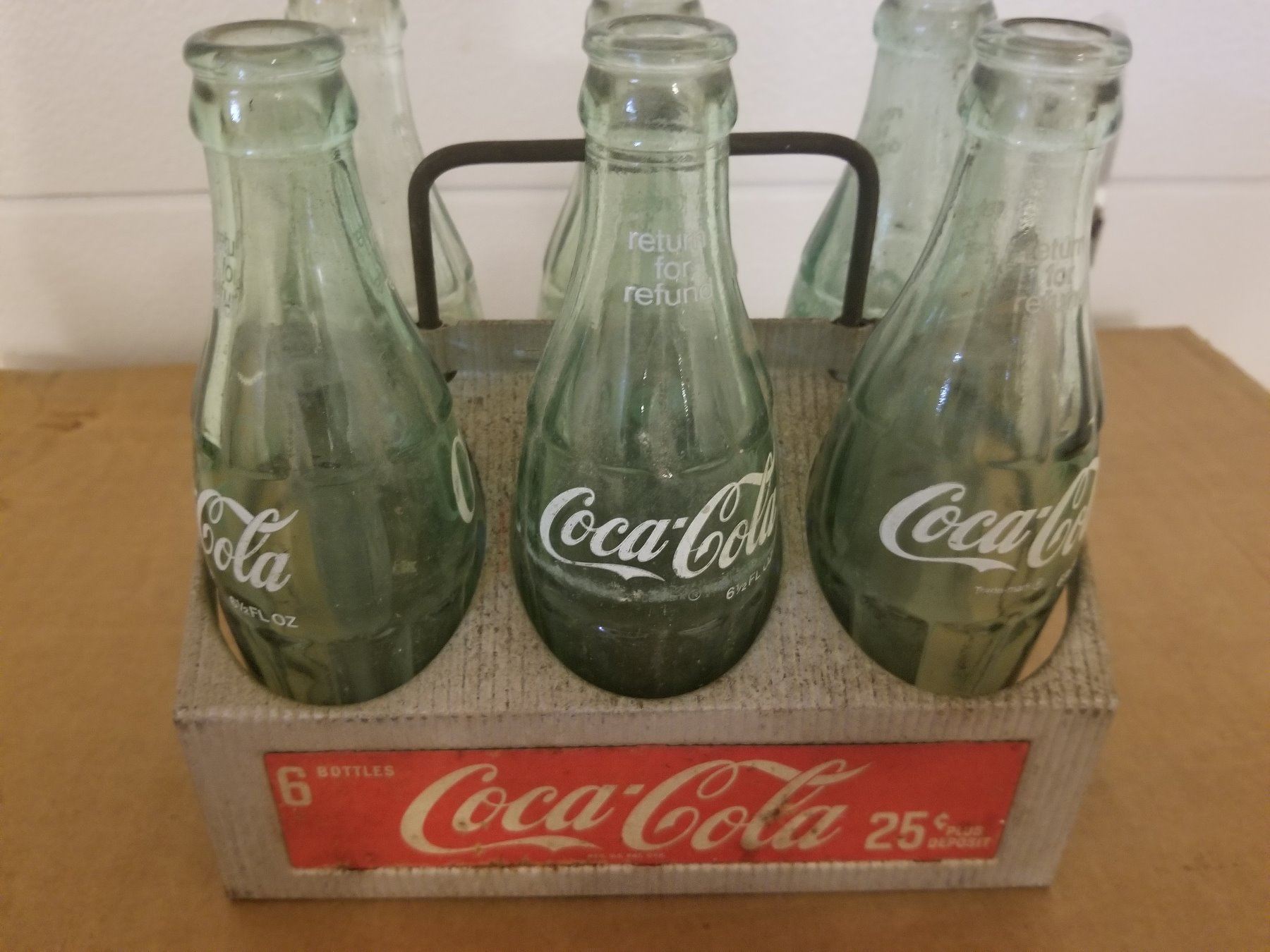 COCA-COLA 6 PACK (TIN CARRY CASE) & GREEN BOTTLES (VINTAGE)