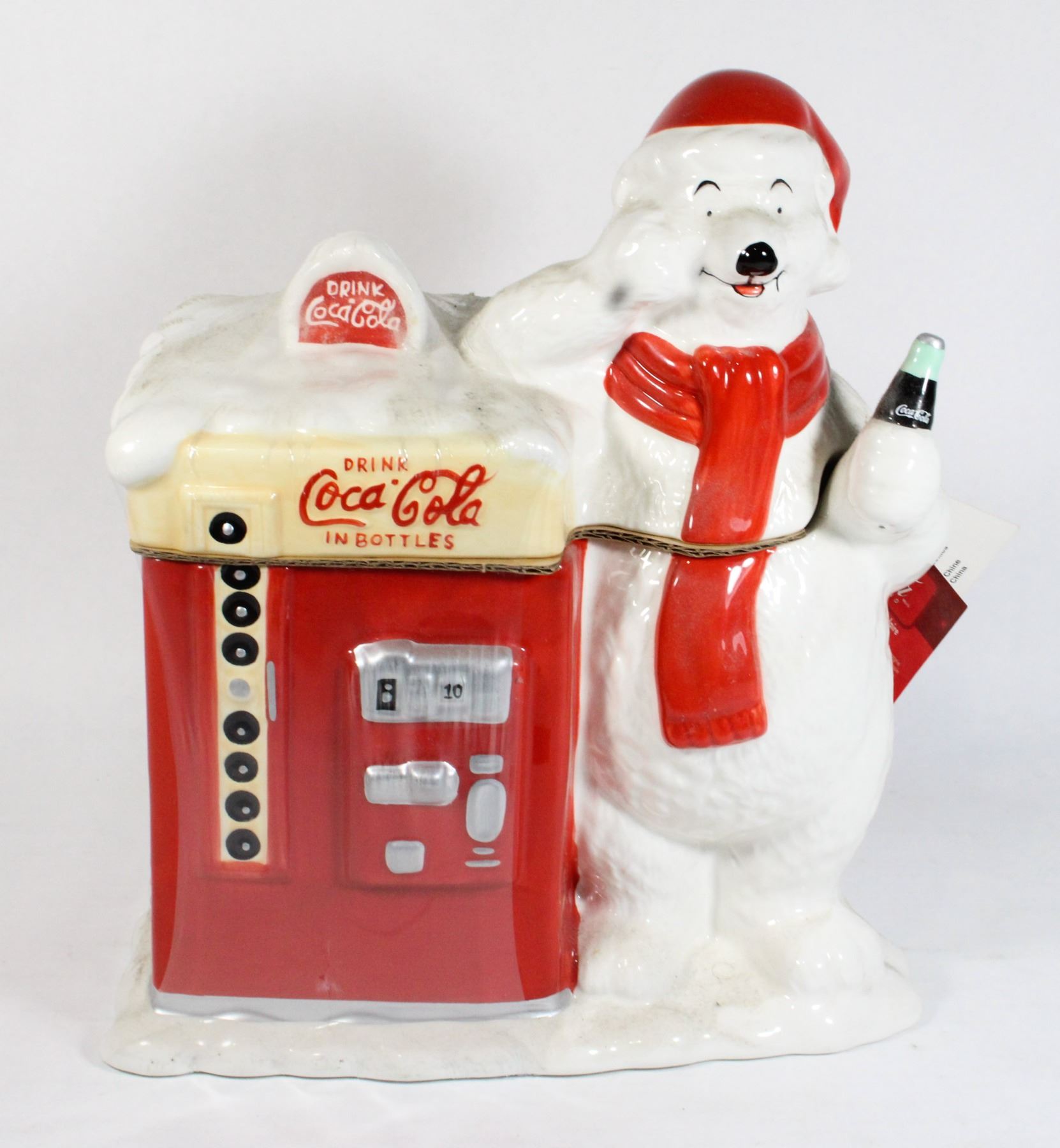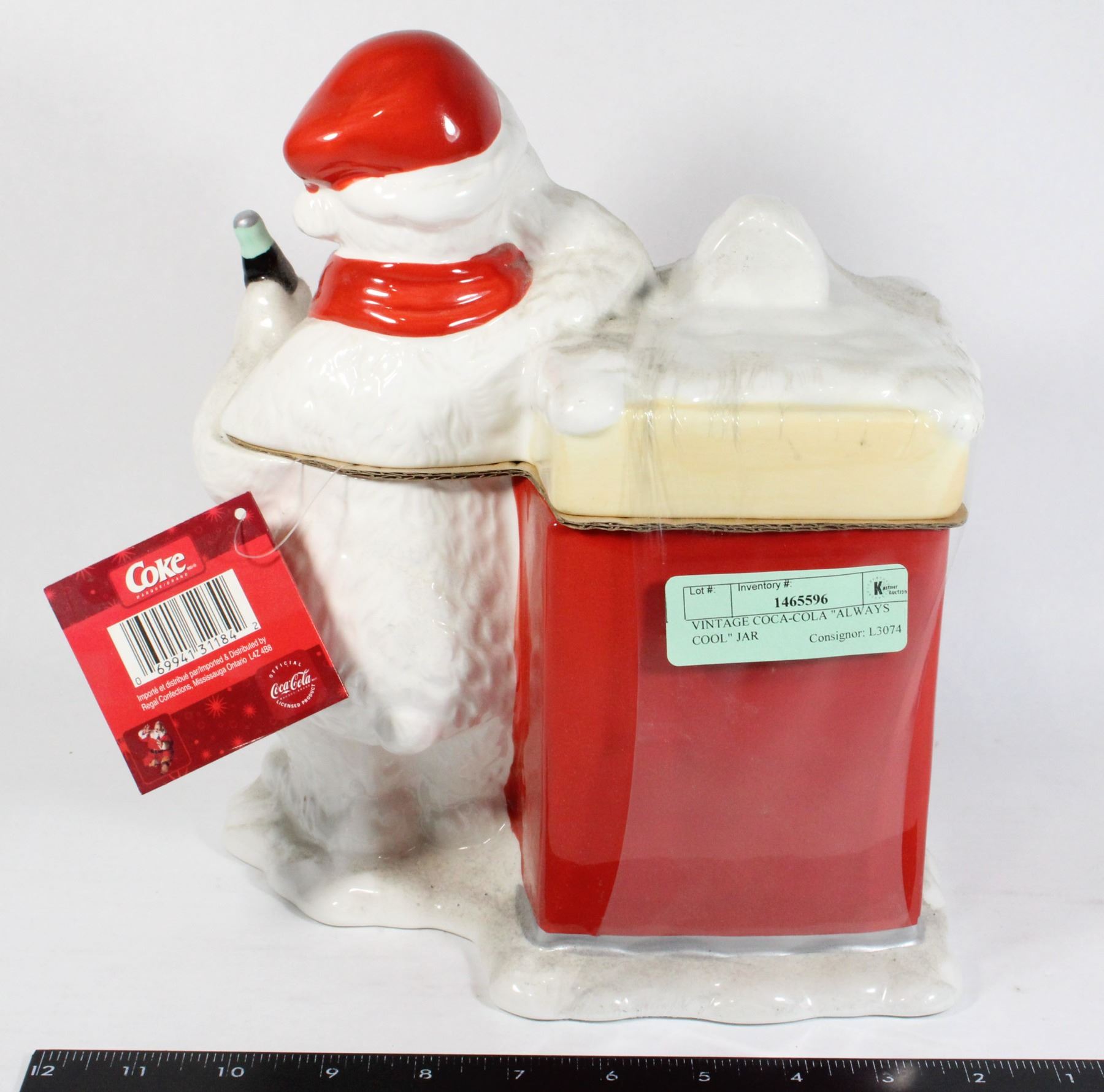COCA-COLA "ALWAYS COOL" POLAR BEAR CERAMIC COOKIE JAR.L8", H10", W5".